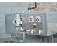 3.脫模油存儲(chǔ)于壓力罐中,以氣壓壓出脫模油,經(jīng)雙流體噴嘴與空氣混合后,形成顆粒狀并噴到烤盤上。通過調(diào)節(jié)設(shè)備上的各調(diào)節(jié)器,可方便地調(diào)出客戶所需的油量及顆粒。